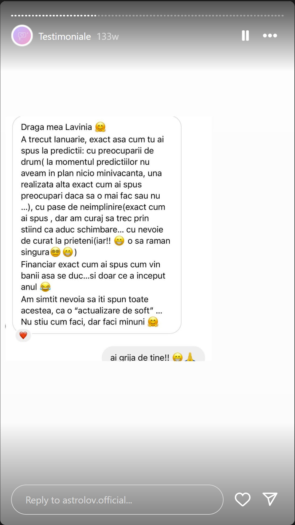 Îți las mai jos câteva dintre mesajele care m-au emoționat cel mai mult: